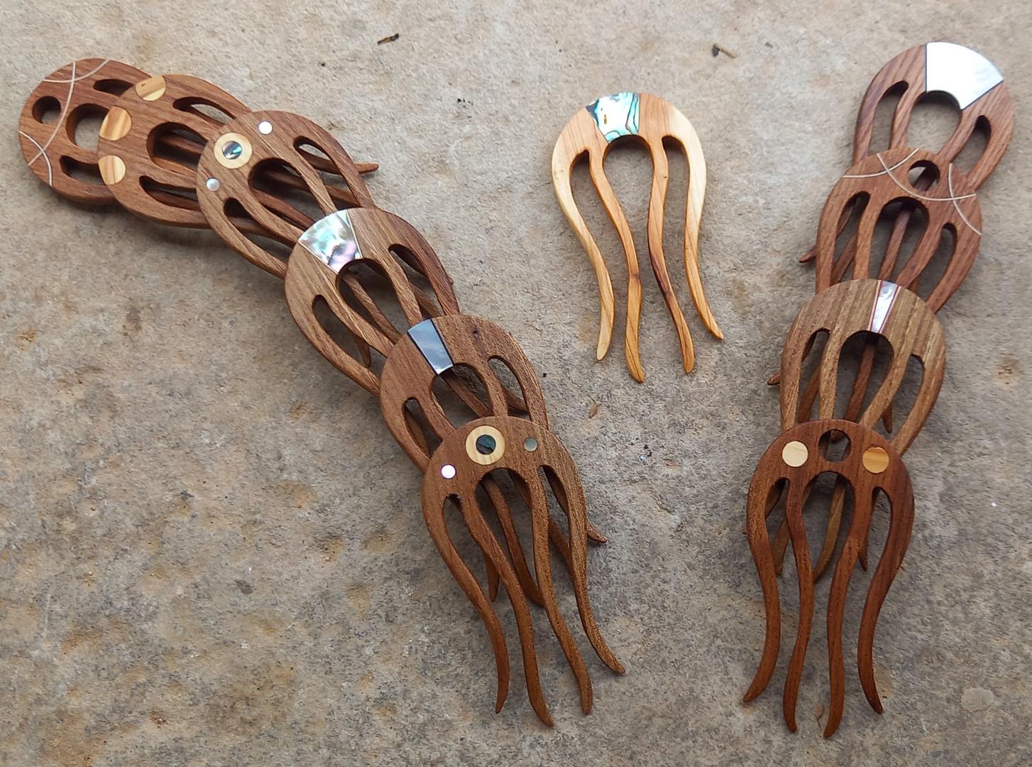 Afin de mettre en valeurs le bois je mélange les matières, j’incruste nacre, corne, os, métaux et fusionne différentes essences de bois.
