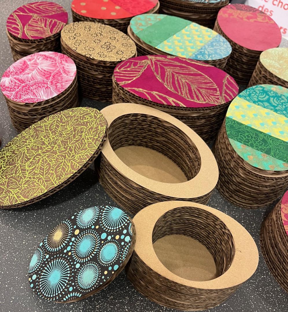 Créations en dentelle de carton et bijoux en perles de papier