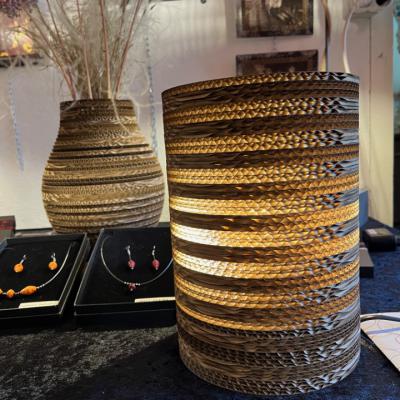 Quant un simple bout de carton devient une création originale et unique... A partir de carton de récupération, Janete coupe, sculte et assemble ce potentiel déchet en objet de décoration. Carton peint à l'encre de chine ou carton brut découpé sur la tranche devenant de la dentelle... le carton se prête à d'infinies possibilités. Encadrements de tableaux, miroirs, photos en dentelle de carton. Luminaires, meubles en carton. Bijoux en perles de papier. Sculptures bois flotté et carton.