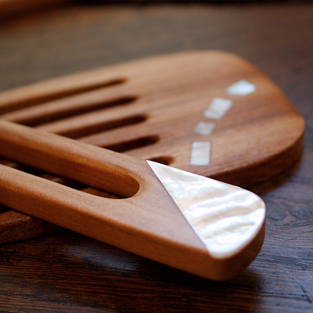 Afin de mettre en valeurs le bois je mélange les matières, j’incruste nacre, corne, os, métaux et fusionne différentes essences de bois.